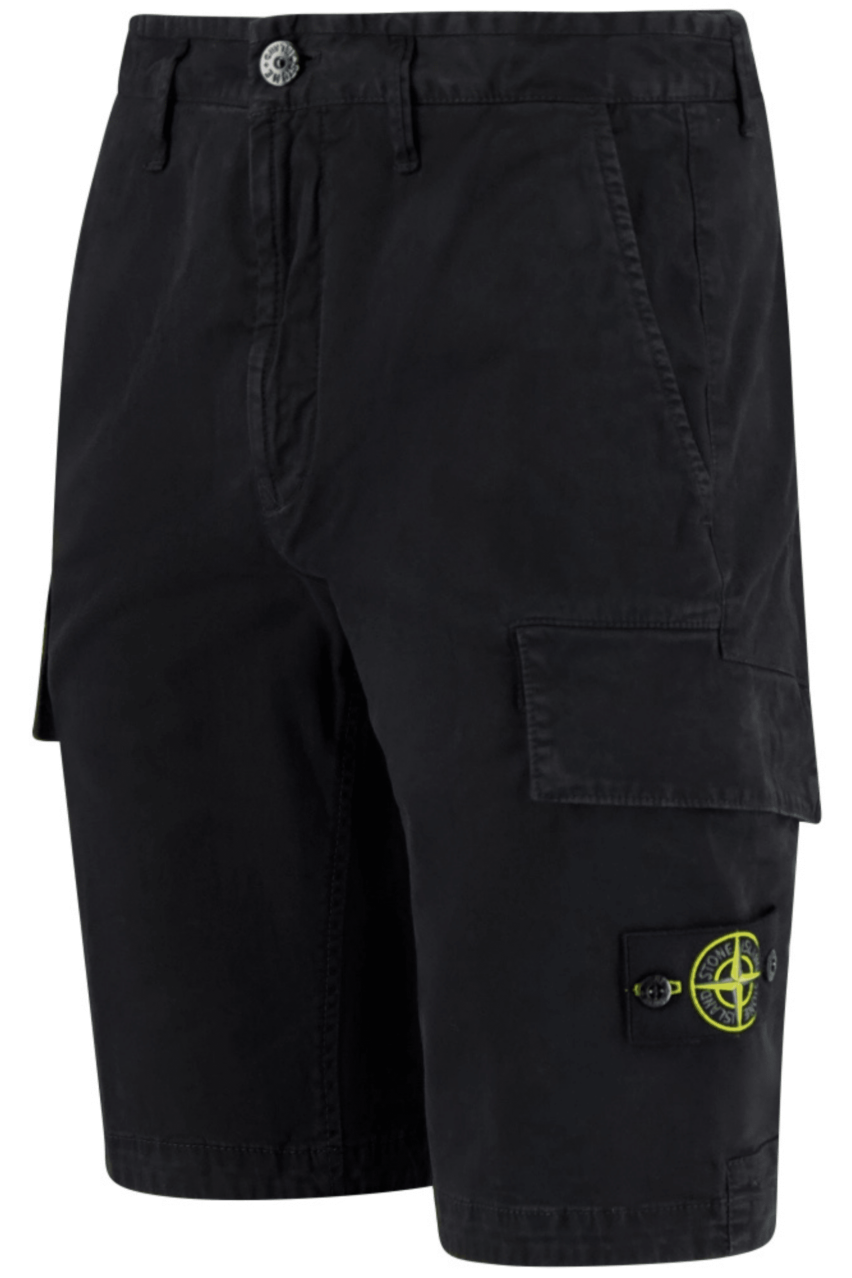 Bermuda Cargo Coton Noir. Poches latérales. Poche arrière pressionnée avec rabat. Poches cargo avec rabat et bouton pression. Logo cuisse gauche.