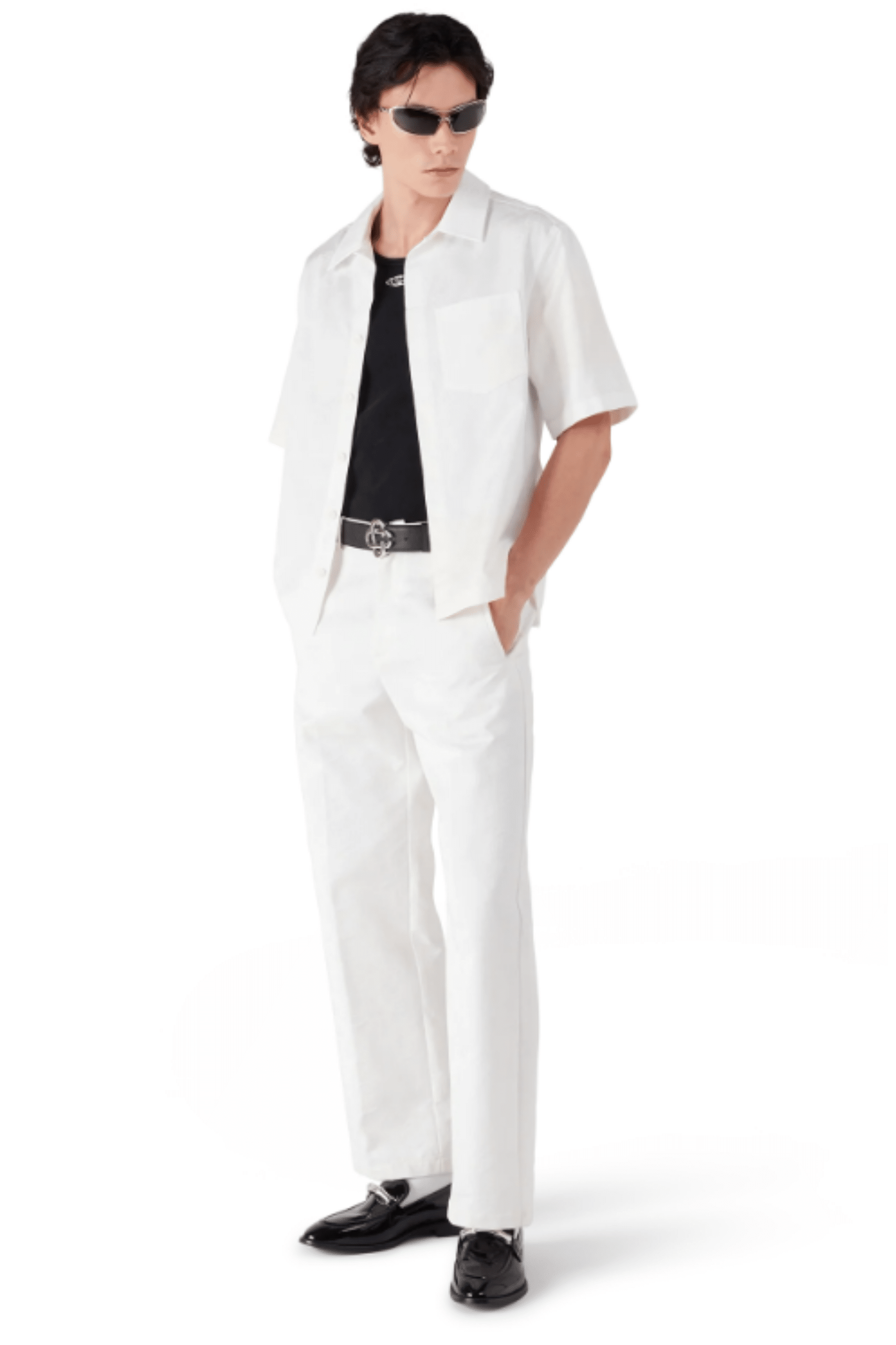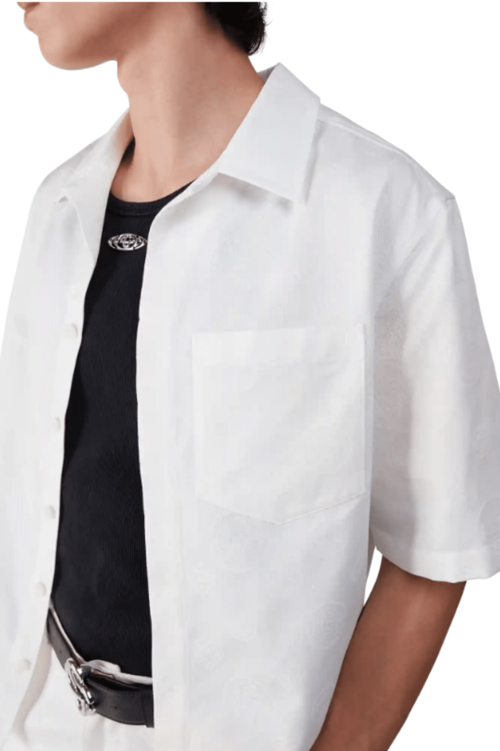 Chemise Coton Blanc Monogrammée. Manches courtes. Col pointu. Poche plaquée devant. Fermeture par boutons en corozo logotés.
