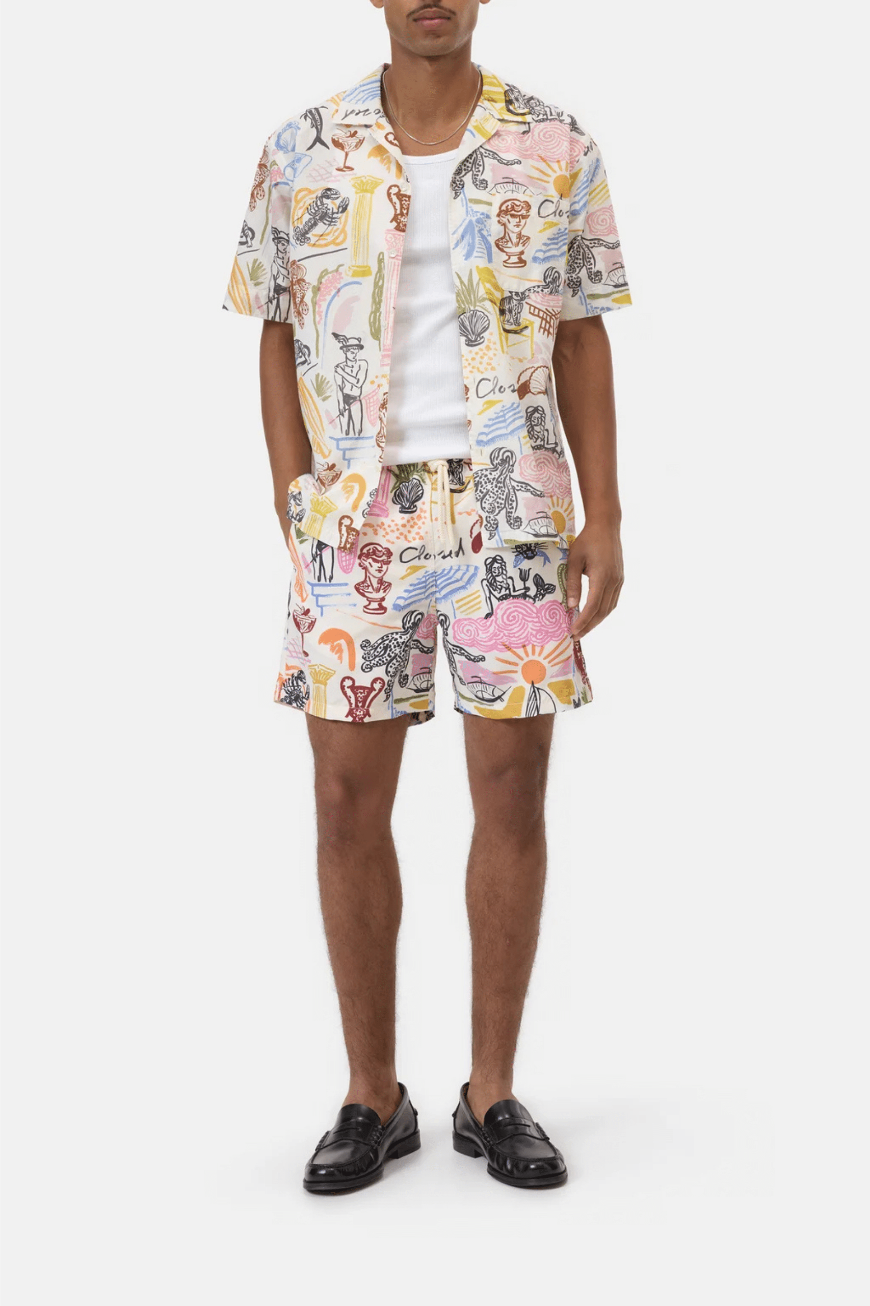 Chemise MC Coton Multico. Manches courtes. Impression colorée et originale. Coupe classique. Boutons en nacre. Poche poitrine.