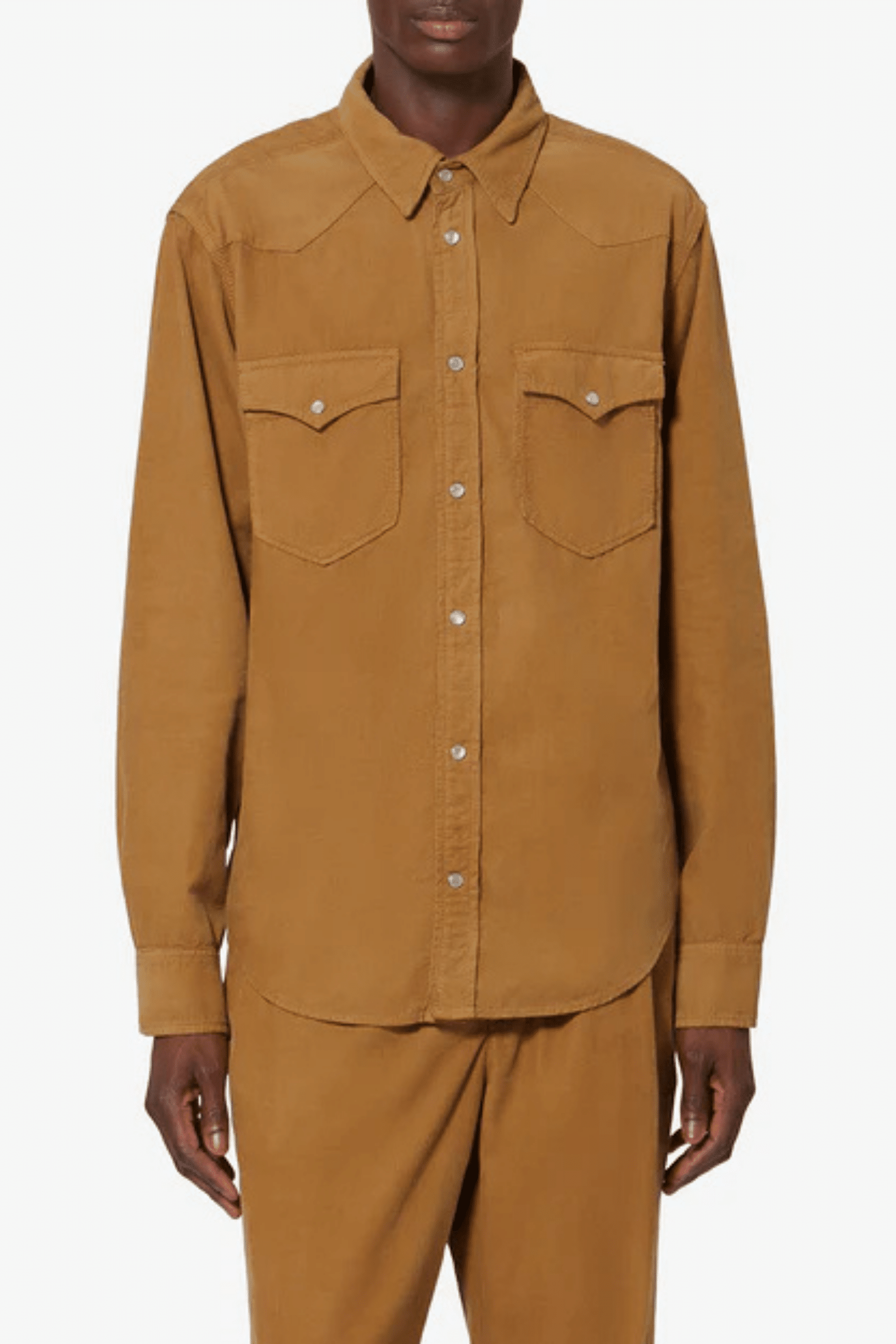 Chemise Vasco Velours Côtelé Bronze. Col chemise. Style western. Fermeture pressionnée. Poches poitrine plaquées. Coupe droite.
