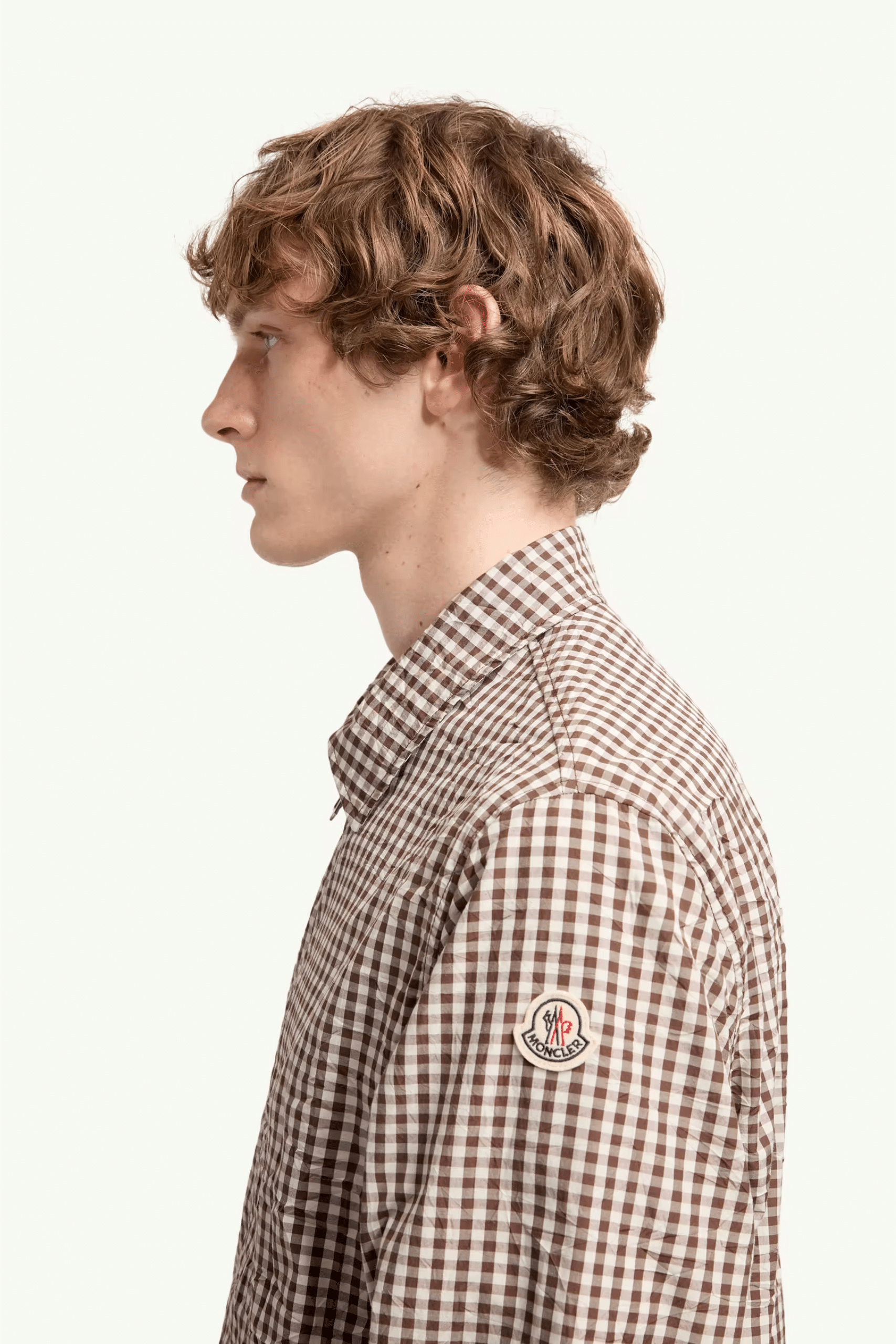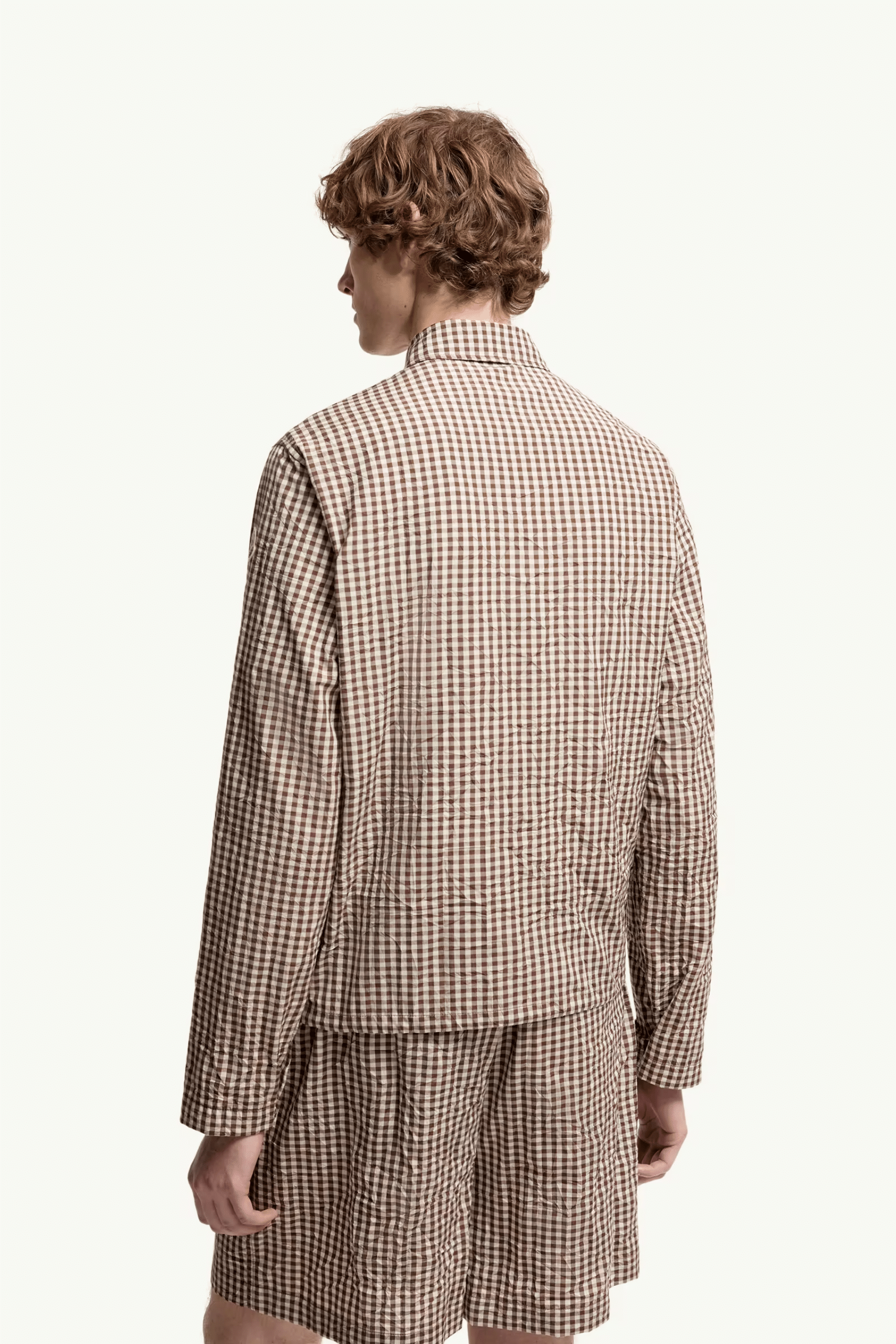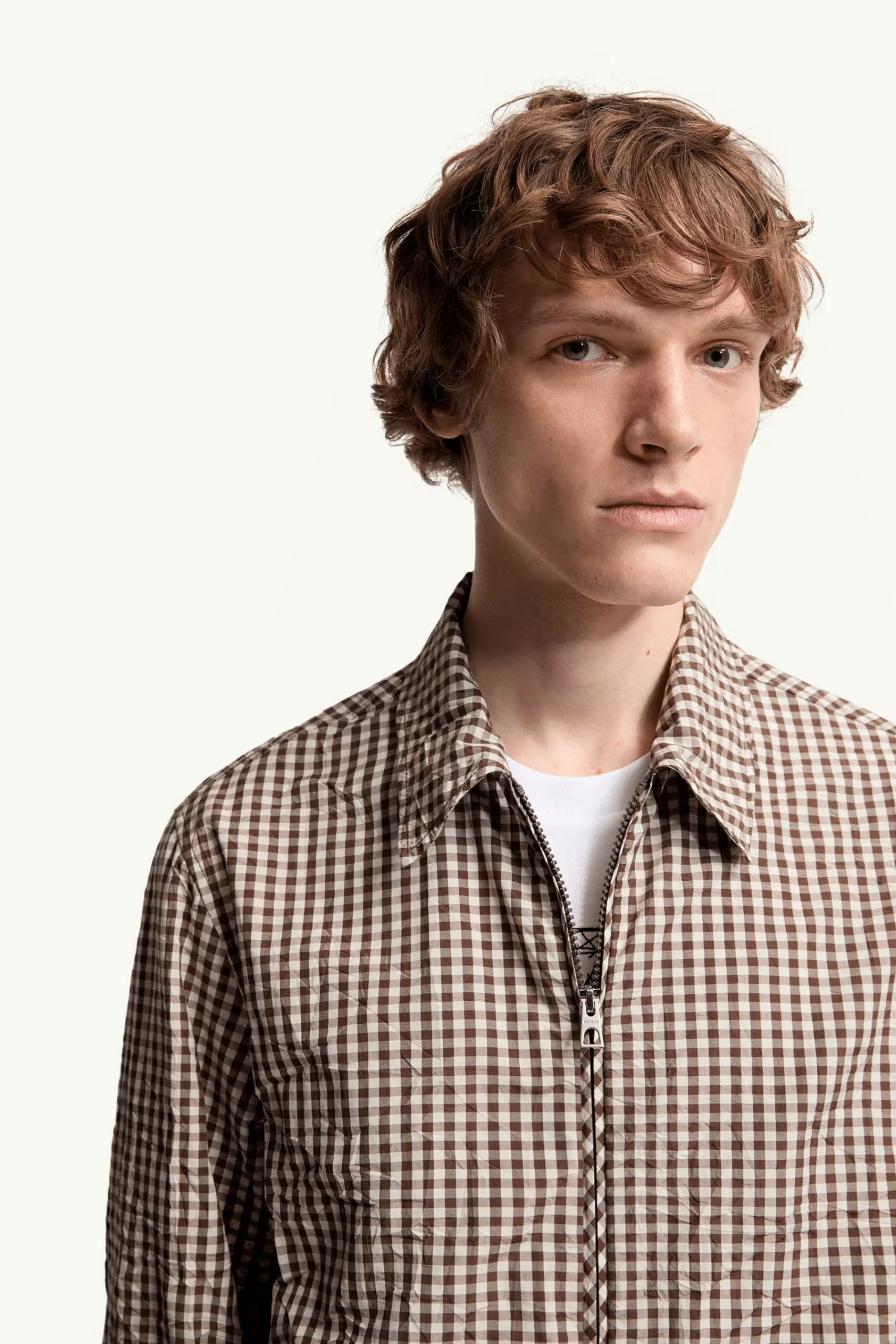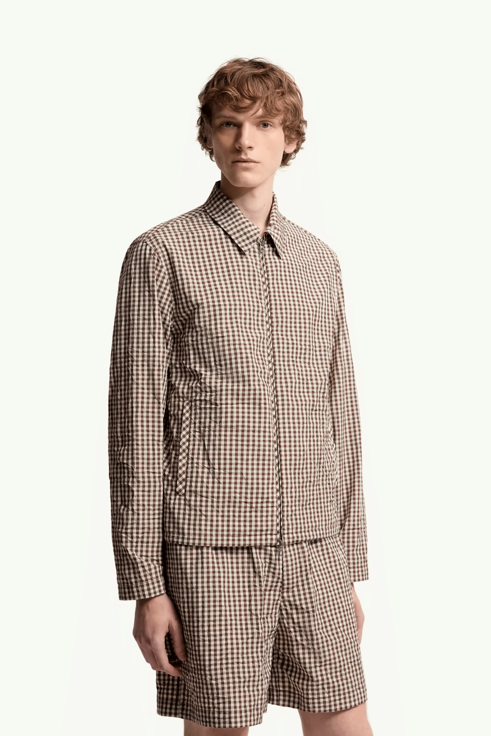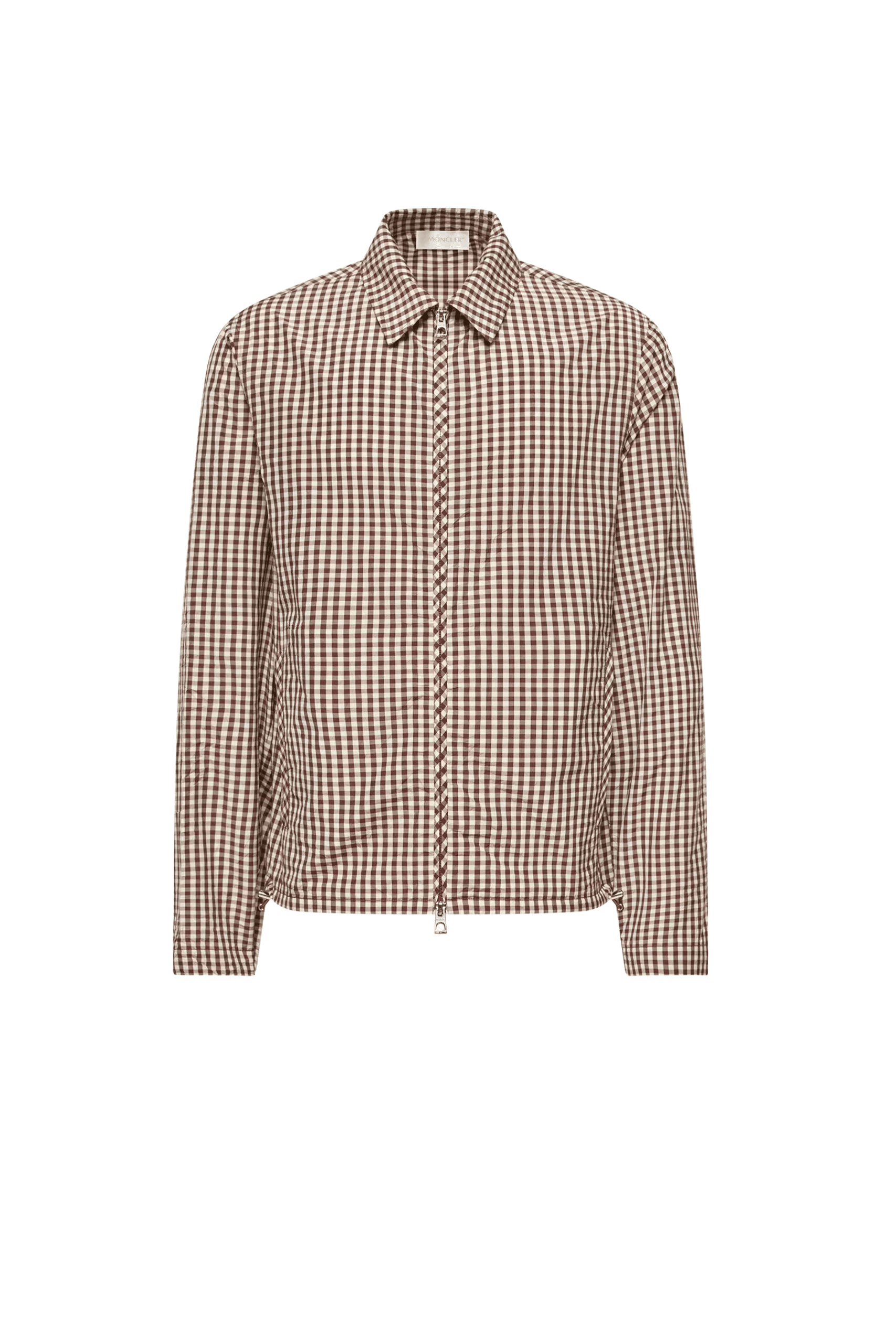 Chemise Zippée Coton Vichy Marron Blanc. Manches longues. Poches latérales. Poignets réglables. Ourlet élastique. Mélange de coton vichy froissé.