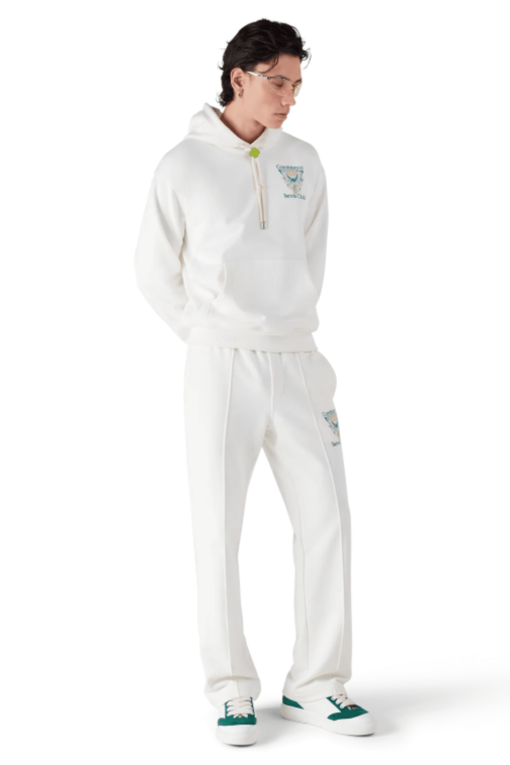 Hoodie Arche De Tennis Coton Blanc. Capuche avec cordon des serrage. Poche kangourou. Impression tennis club iconique. Coupe décontractée.