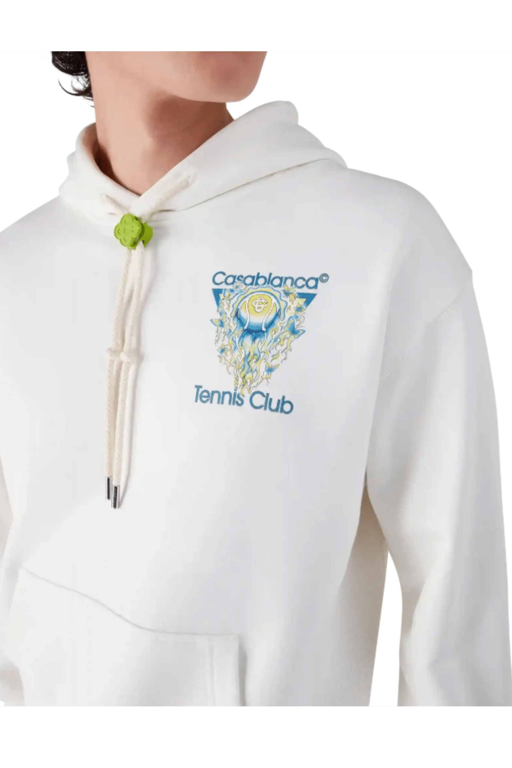 Hoodie Arche De Tennis Coton Blanc. Le sweat à capuche Tennis Club Icon est un modèle sportswear raffiné qui arbore l’illustration du logo emblématique de la maison, une balle de tennis en plein vol, reflétant l’équilibre fondamental entre puissance, vitesse et contrôle.
