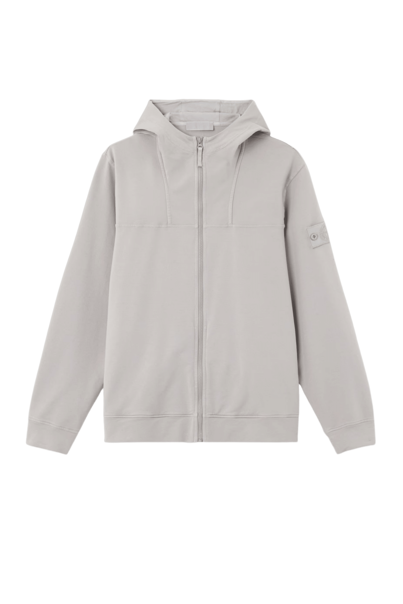 Hoodie Zippé Coton Gris Poudré. Capuche à double épaisseur. Badge Ghost sur la manche gauche. Poches verticales. Coupe regular.