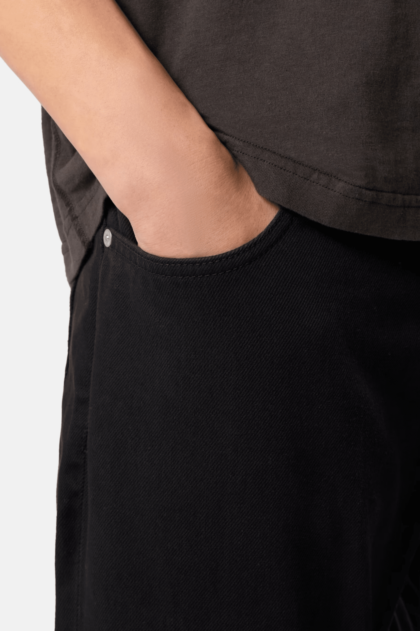 - Poches mains incurvées avec poche à monnaie sur le côté droit et petite étoile brodée sous la poche gauche