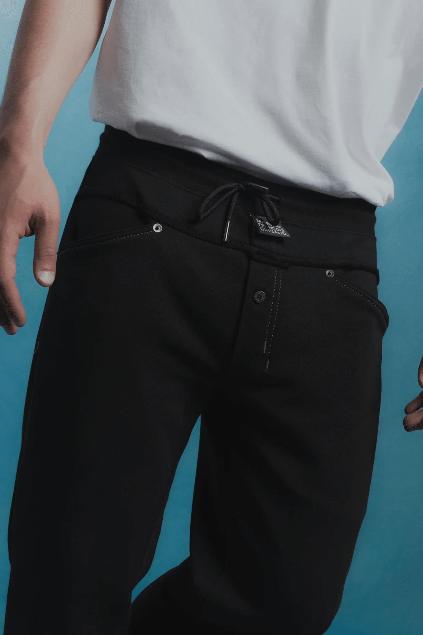 Le Pantalon Blockickx est une réinterprétation Internwear des pantalons iconiques X-pockets Girbaud. Fusionnant les codes du jean avec ceux du sportswear, les rivets métalliques et les découpes raw-edge renforcent non seulement ses coutures, mais aussi sa connexion à ses origines utilitaires et à la réalité du pantalon de travail. Nouvelle étiquette Tear-off Label, qui peut être visible ou découpée : « Wear it in, or wear it out ».