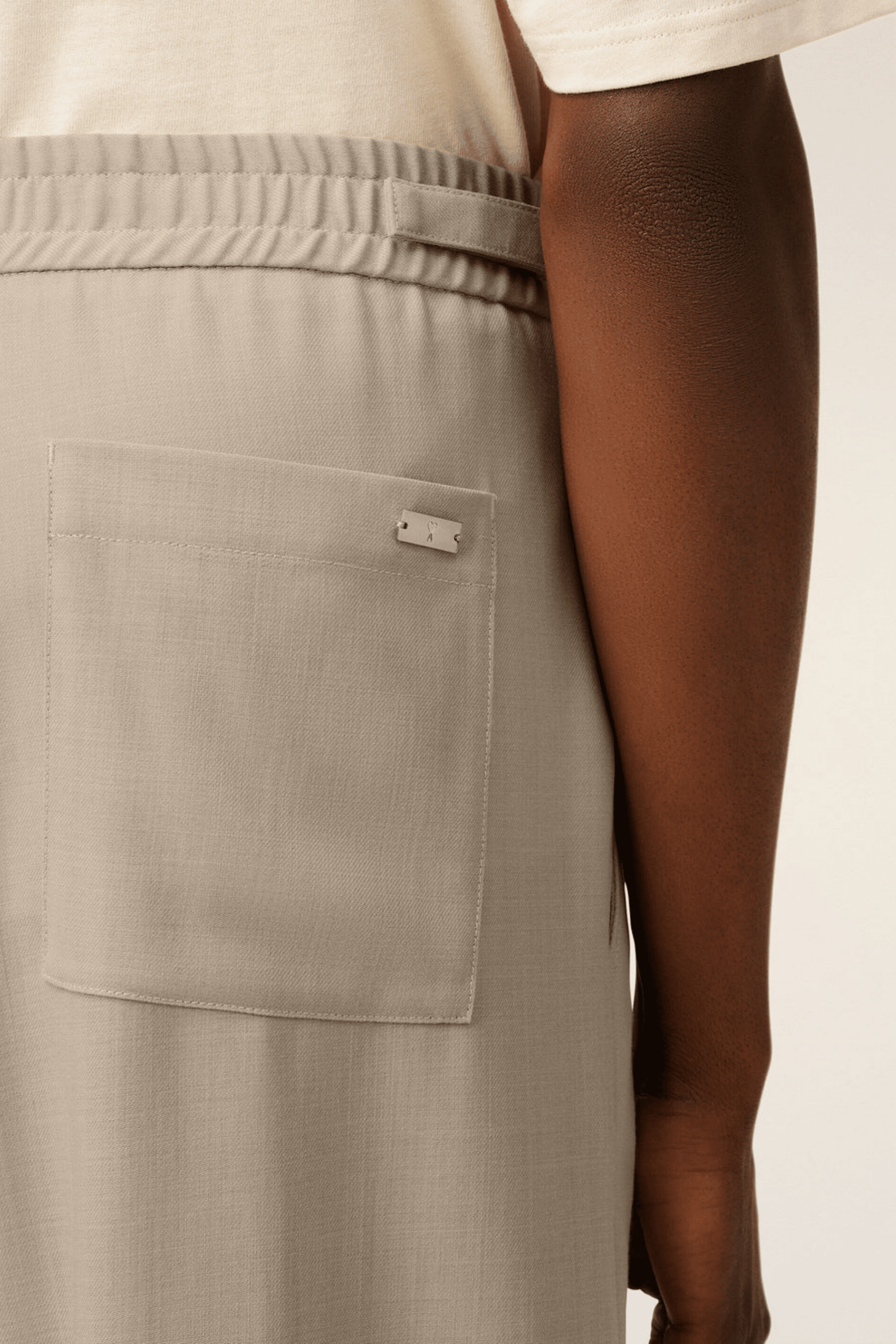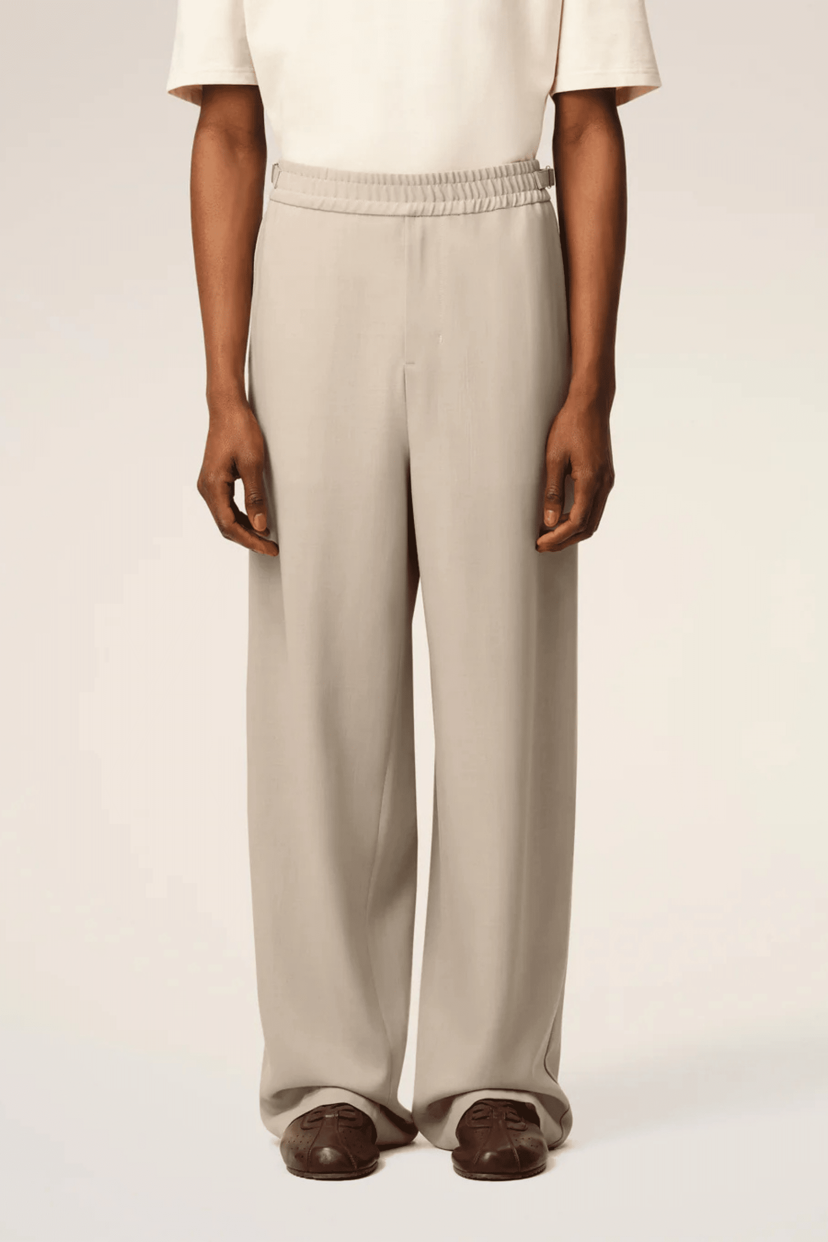 Pantalon Élastiqué Laine Café Crème