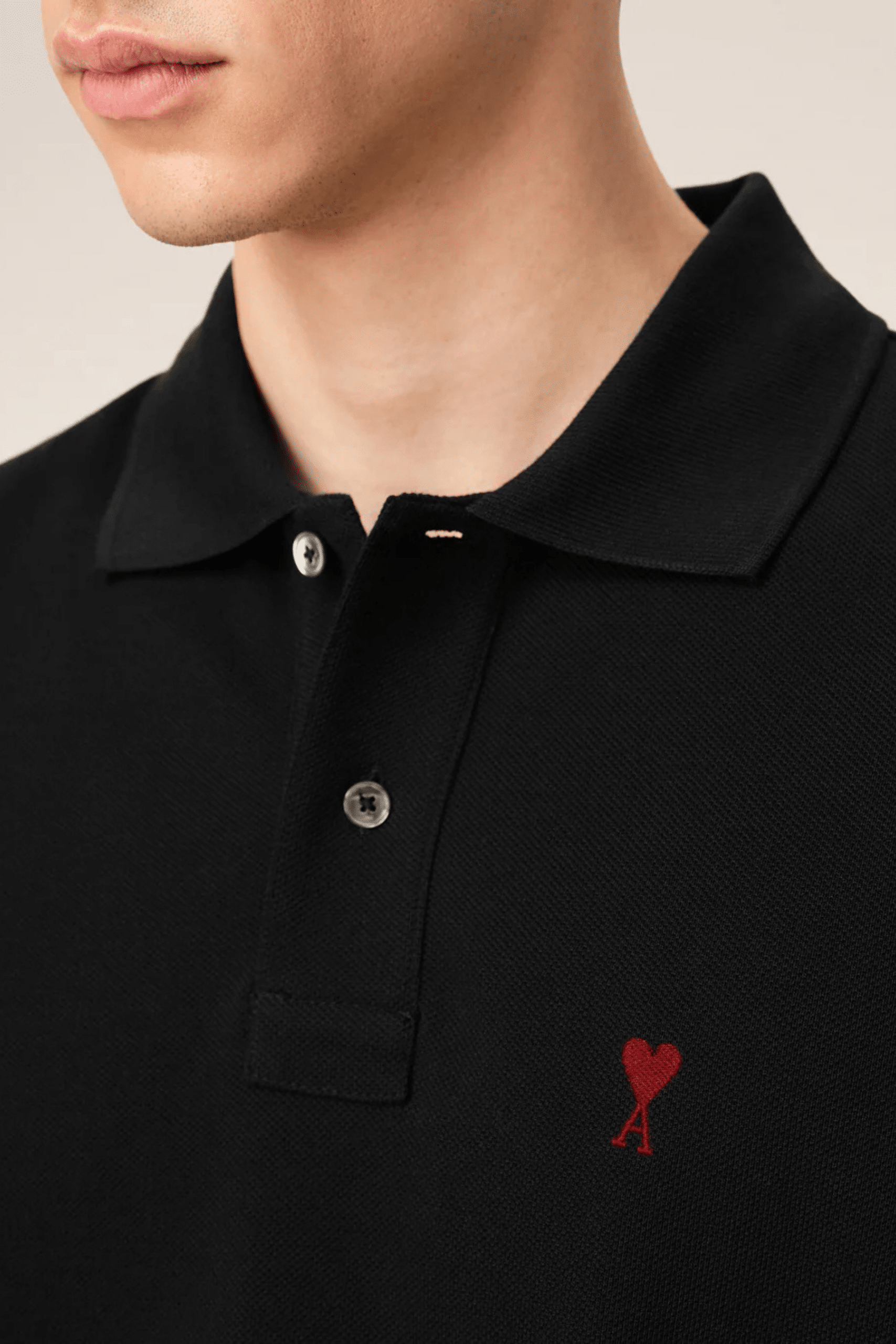 Polo Noir Cœur Rouge, en piqué de coton.