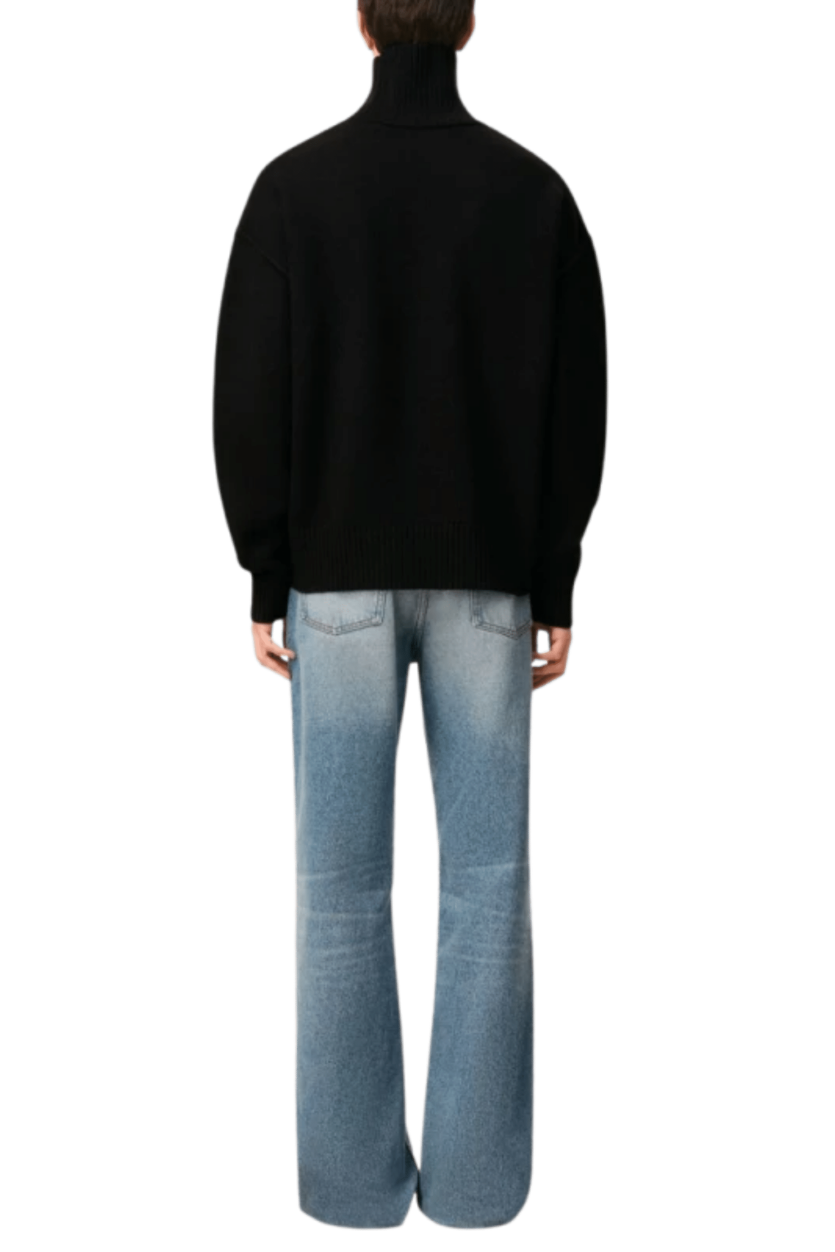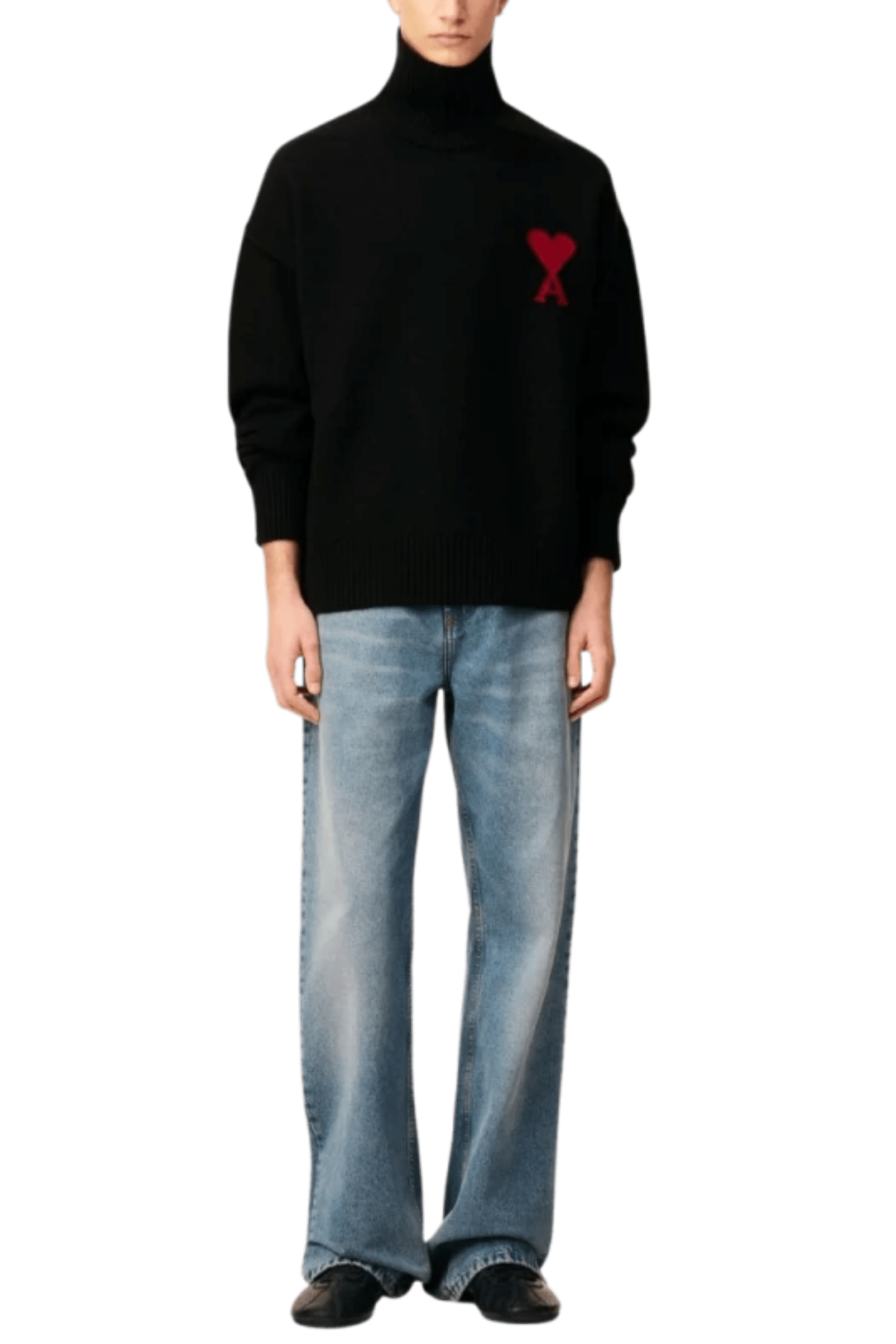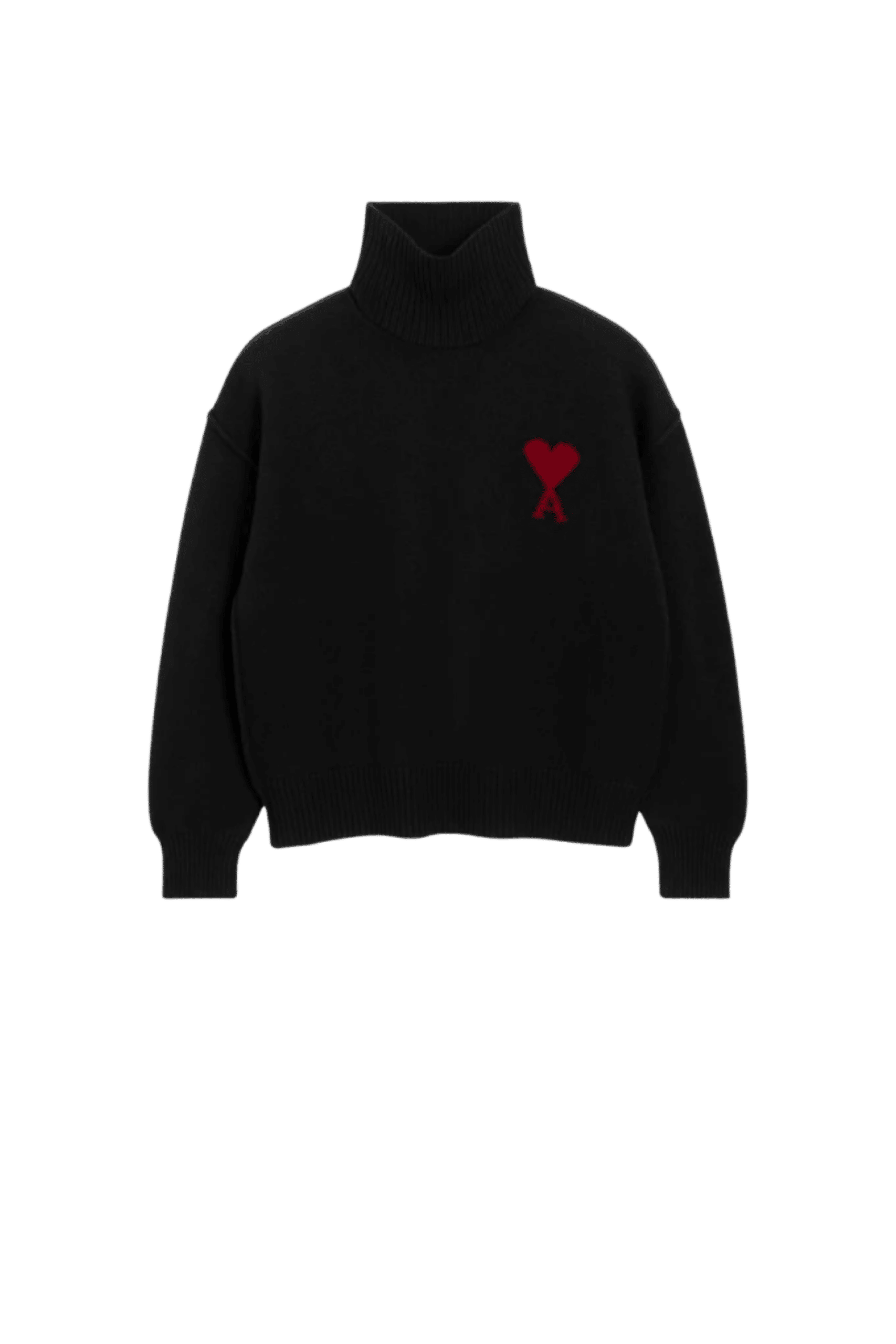 Pull Col Roulé Laine Noir Cœur Rouge