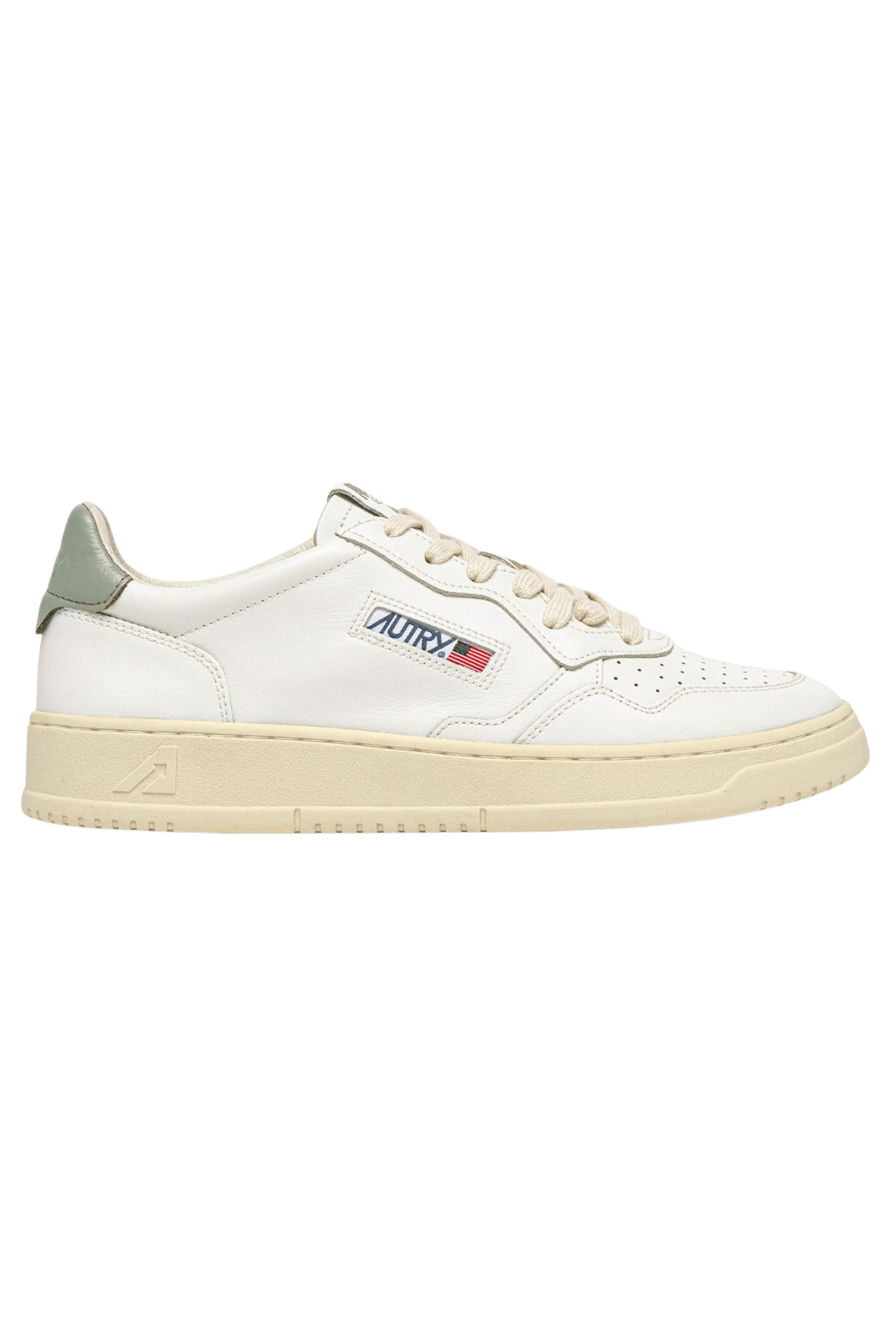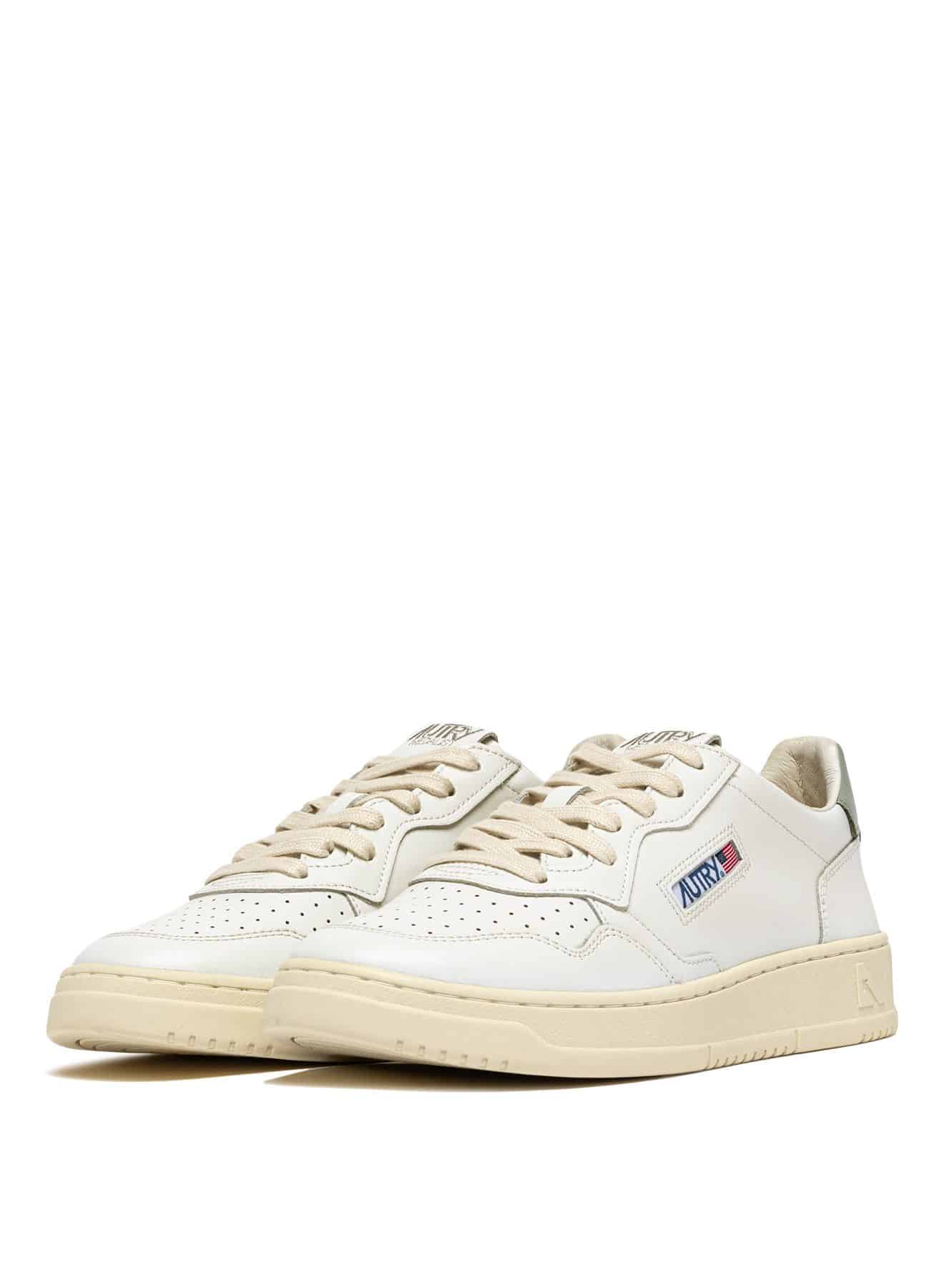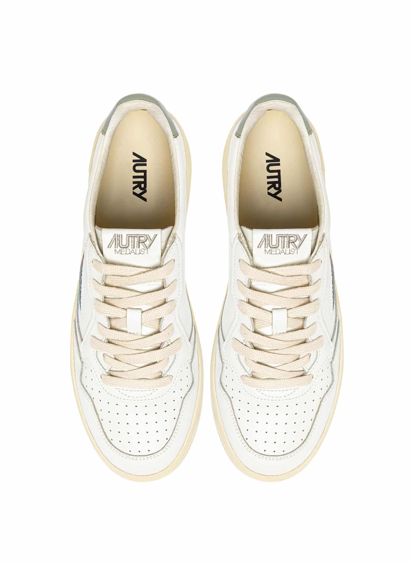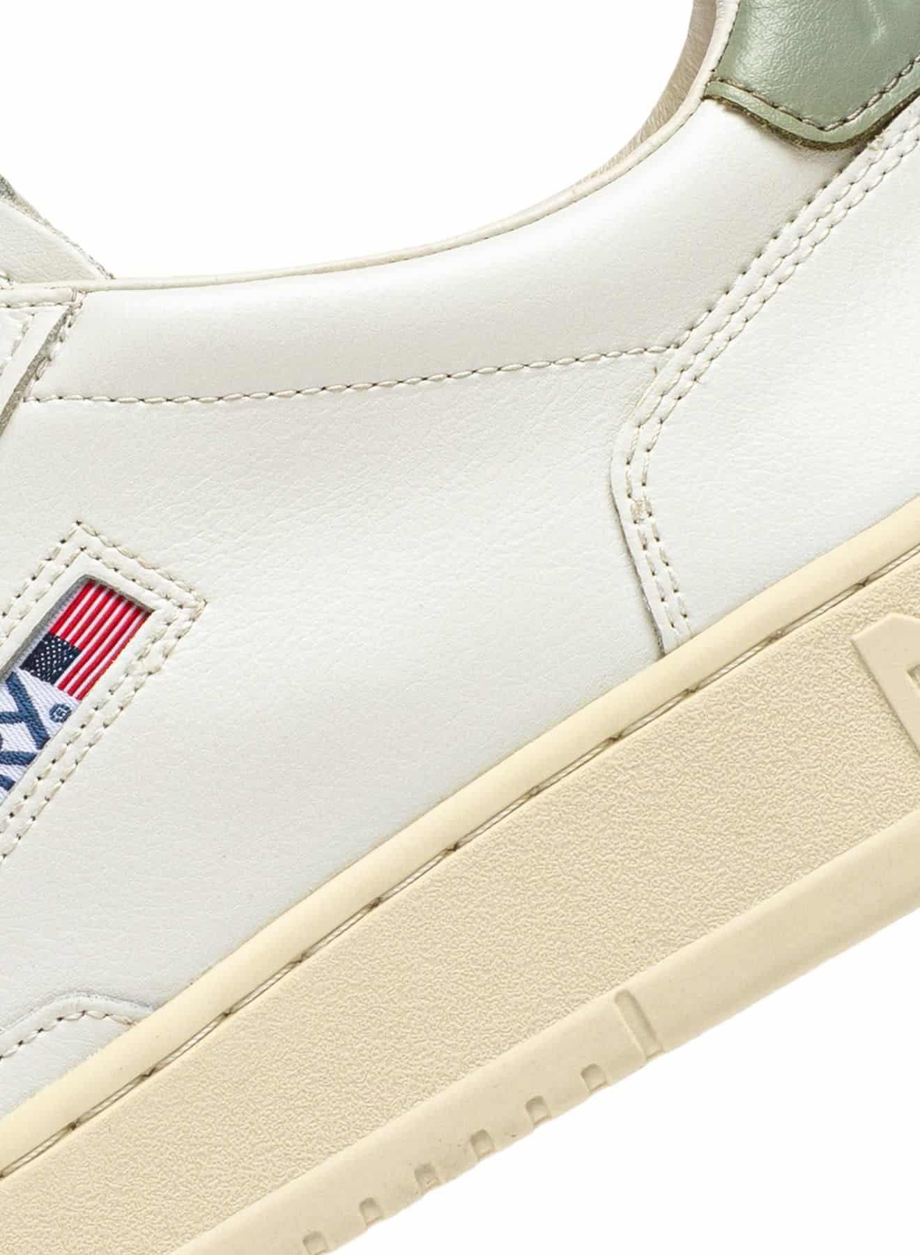 Sneakers Medalist Cuir Blanc Vert. Cuir grainé blanc. Col rembourré. Logo embossé sur le contrefort en cuir vert. Semelle emblématique.