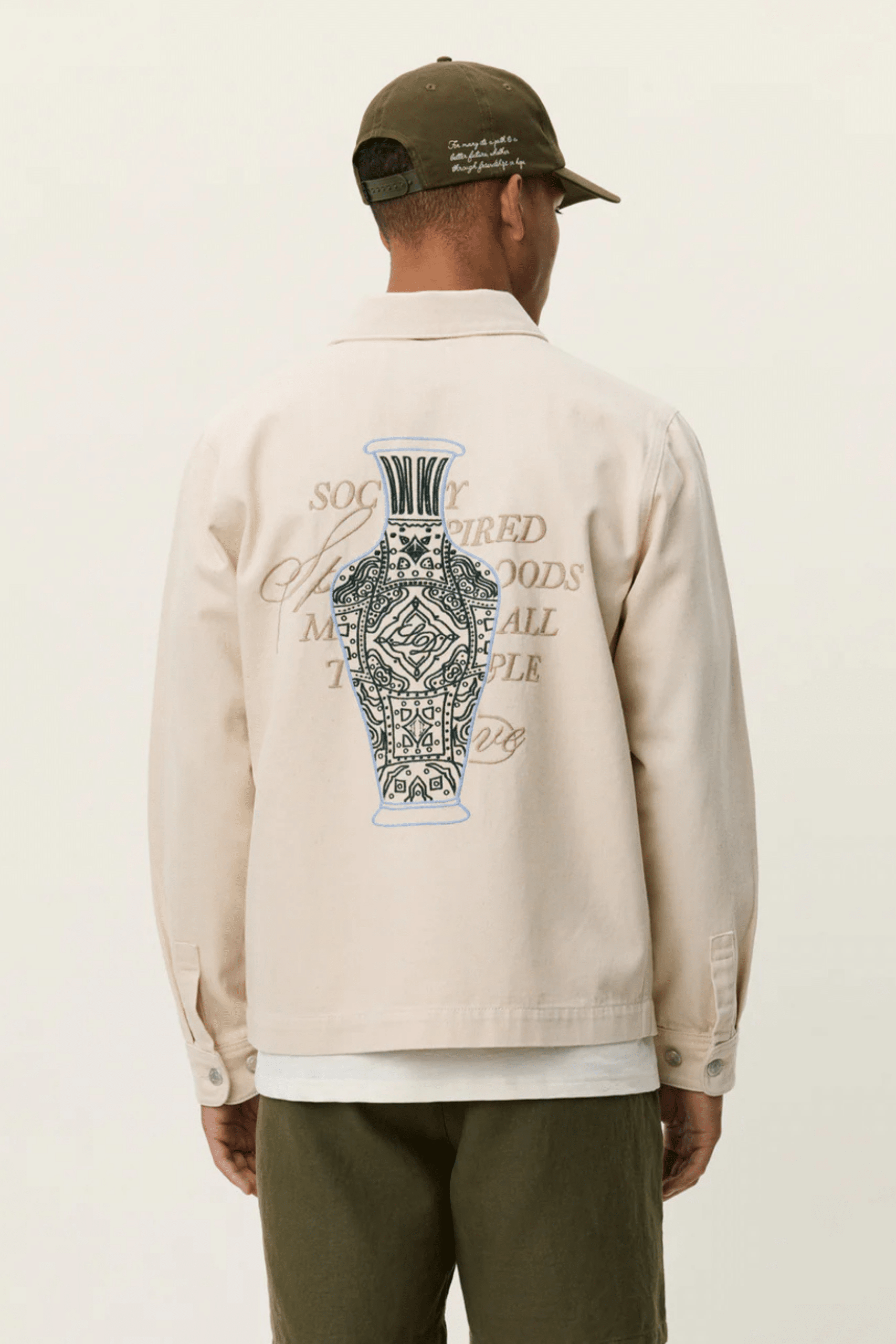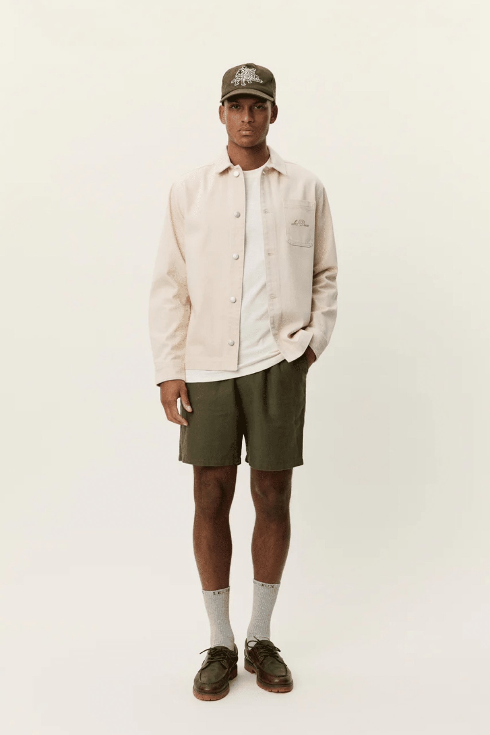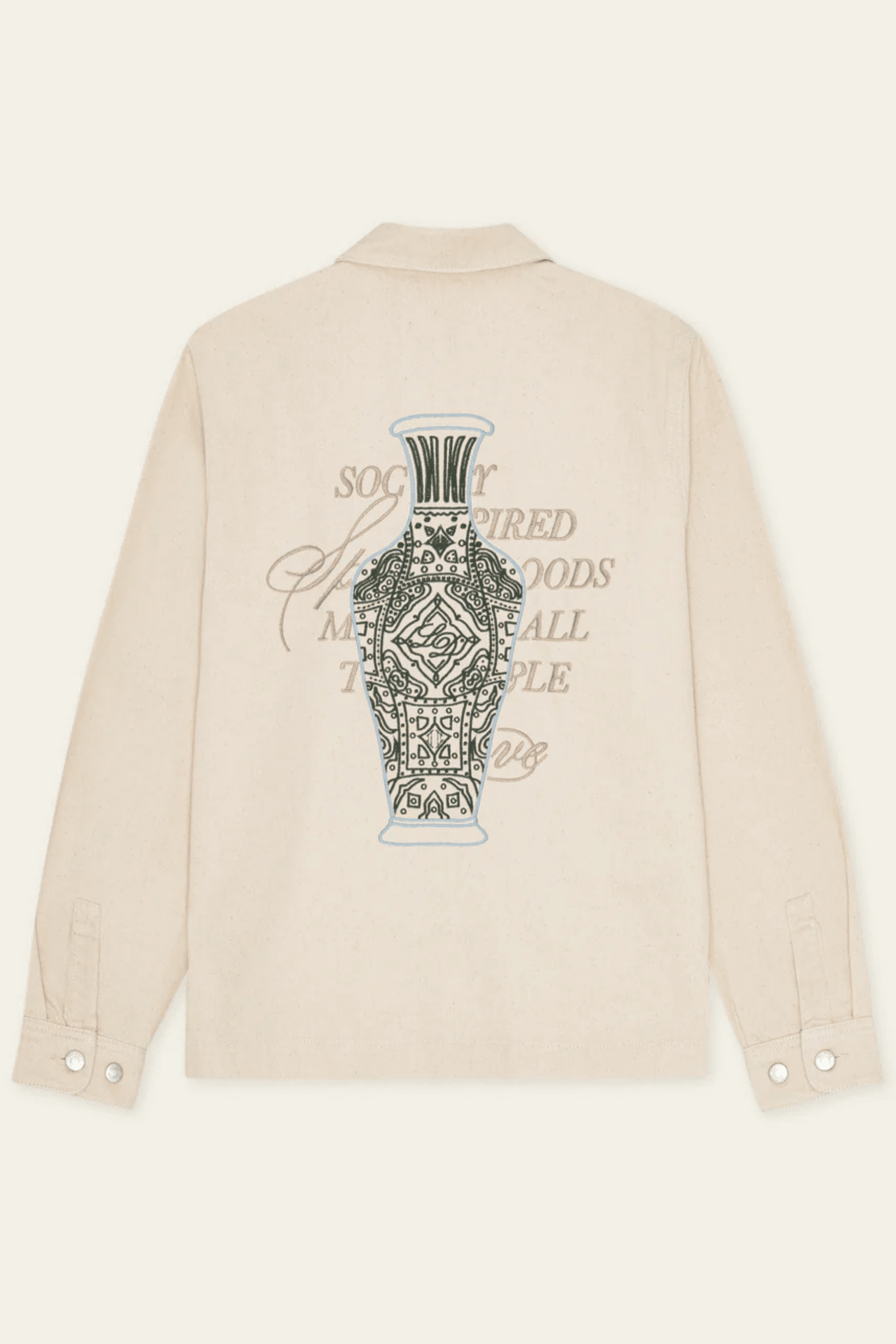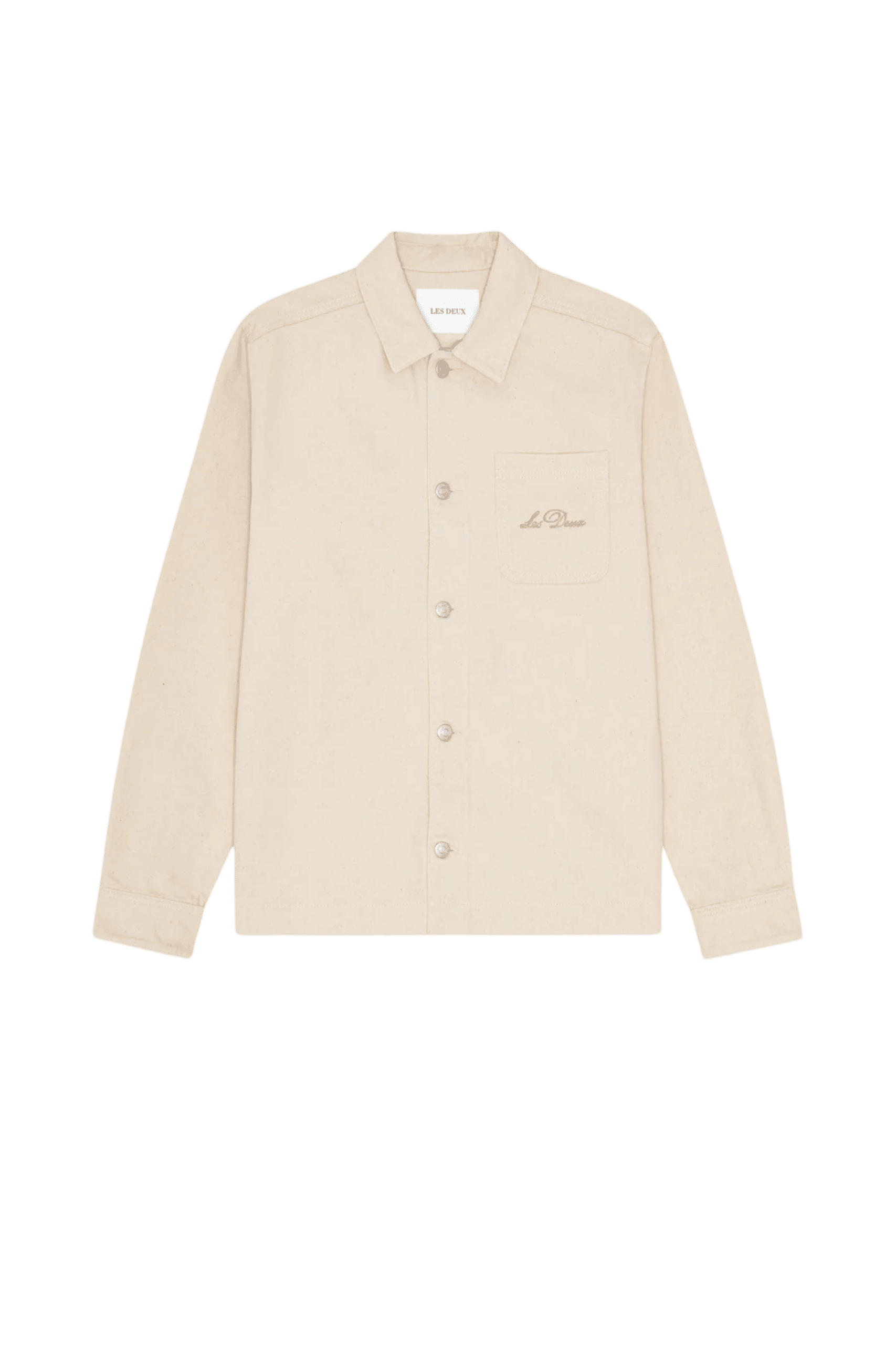 Surchemise Layton Faïence Ivoire, en sergé de coton. Broderie logo sur la poche poitrine. Grand motif au dos. Fermeture boutonnée devant. Poignets ajustables.