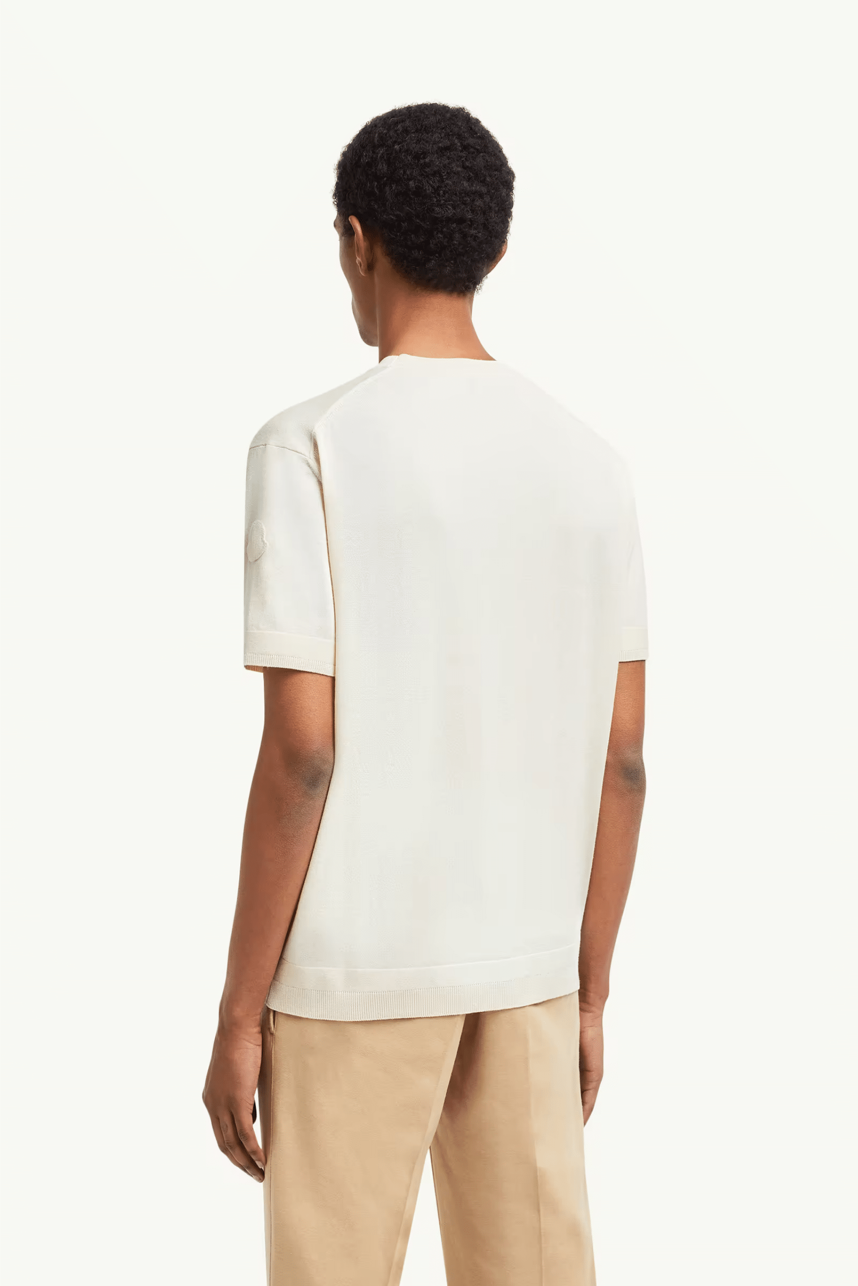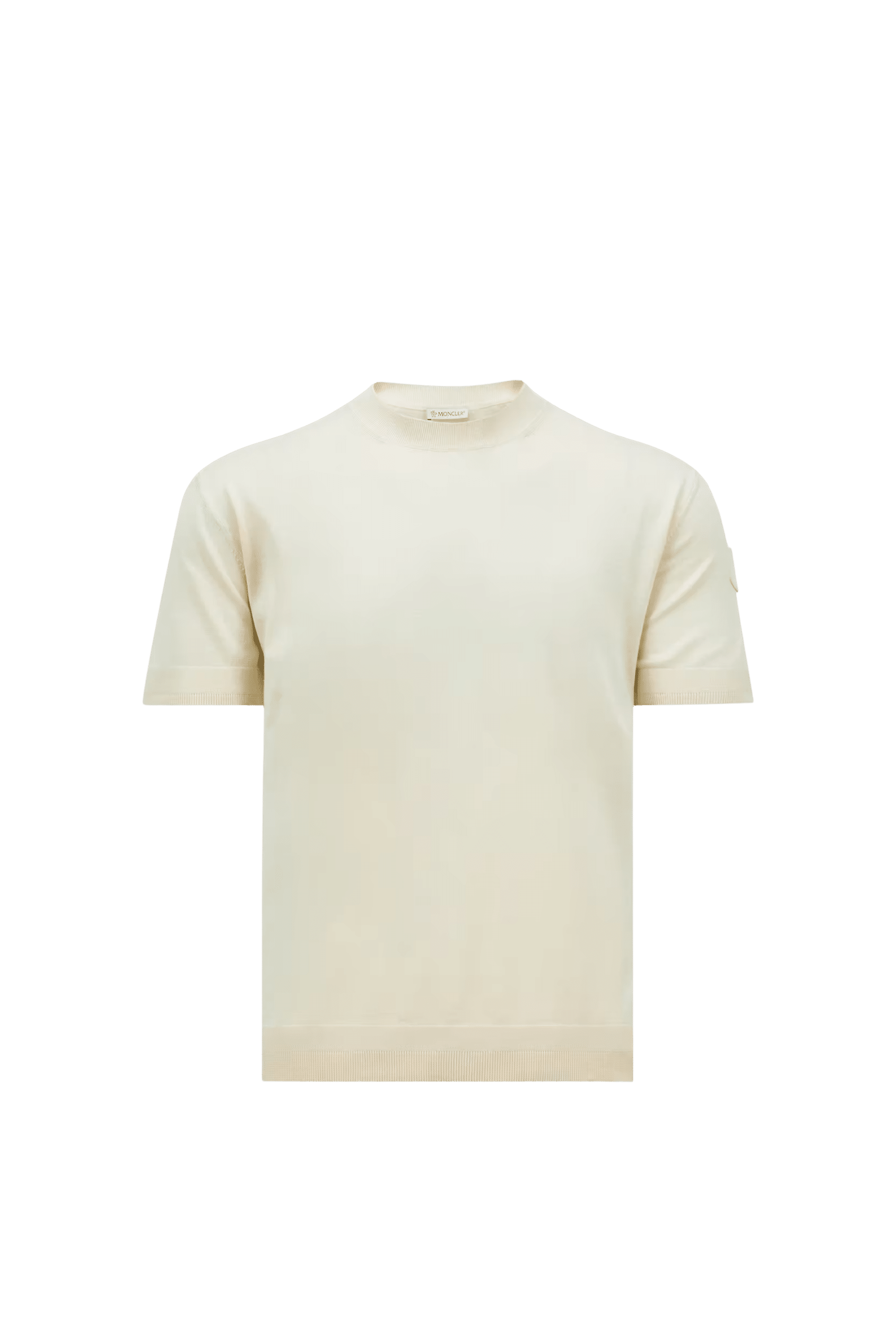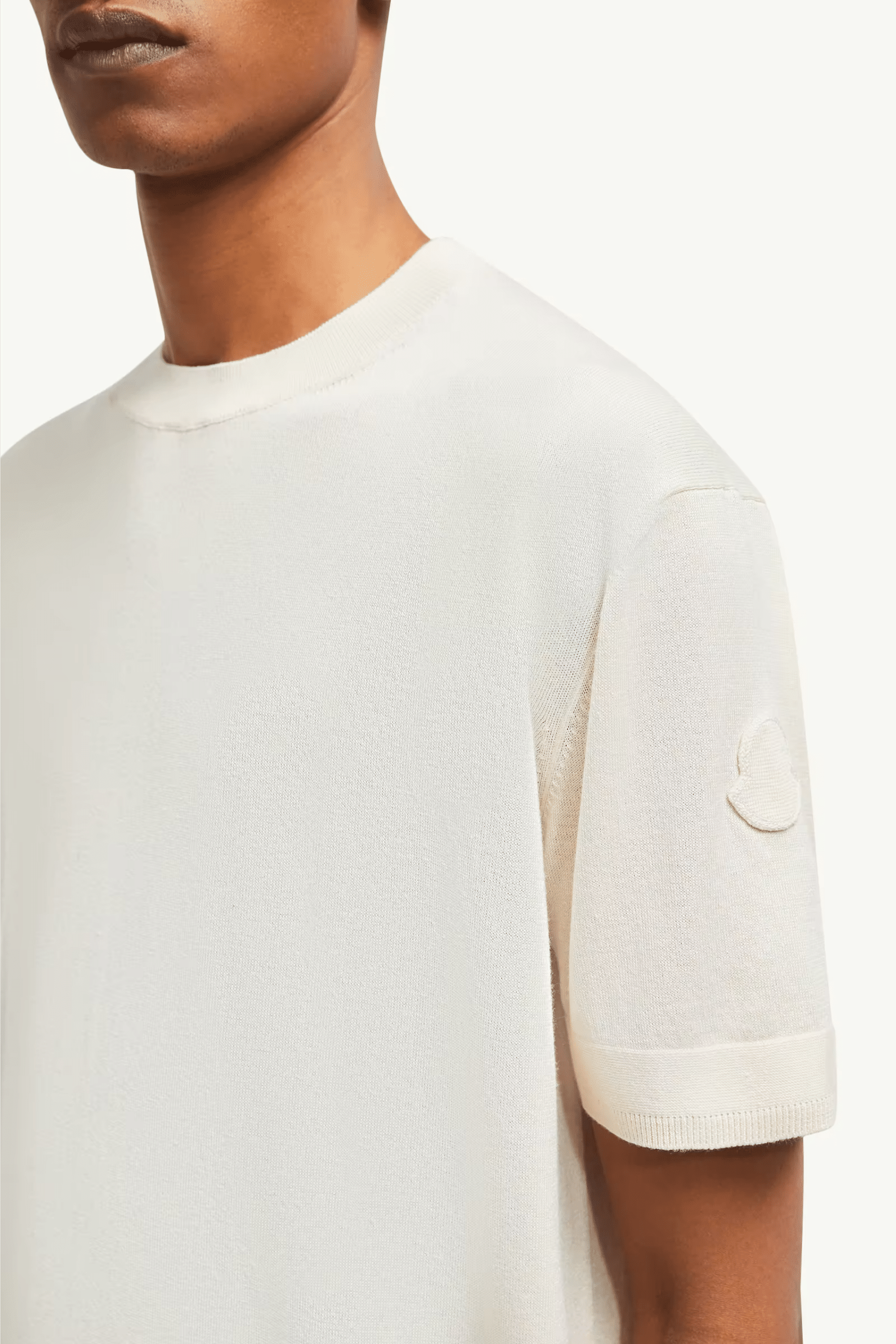 Tee-Shirt Coton Soie Blanc. Mélange luxueux de soie et coton. Manches courtes. Encolure arrondie. Logo sur la manche gauche.
