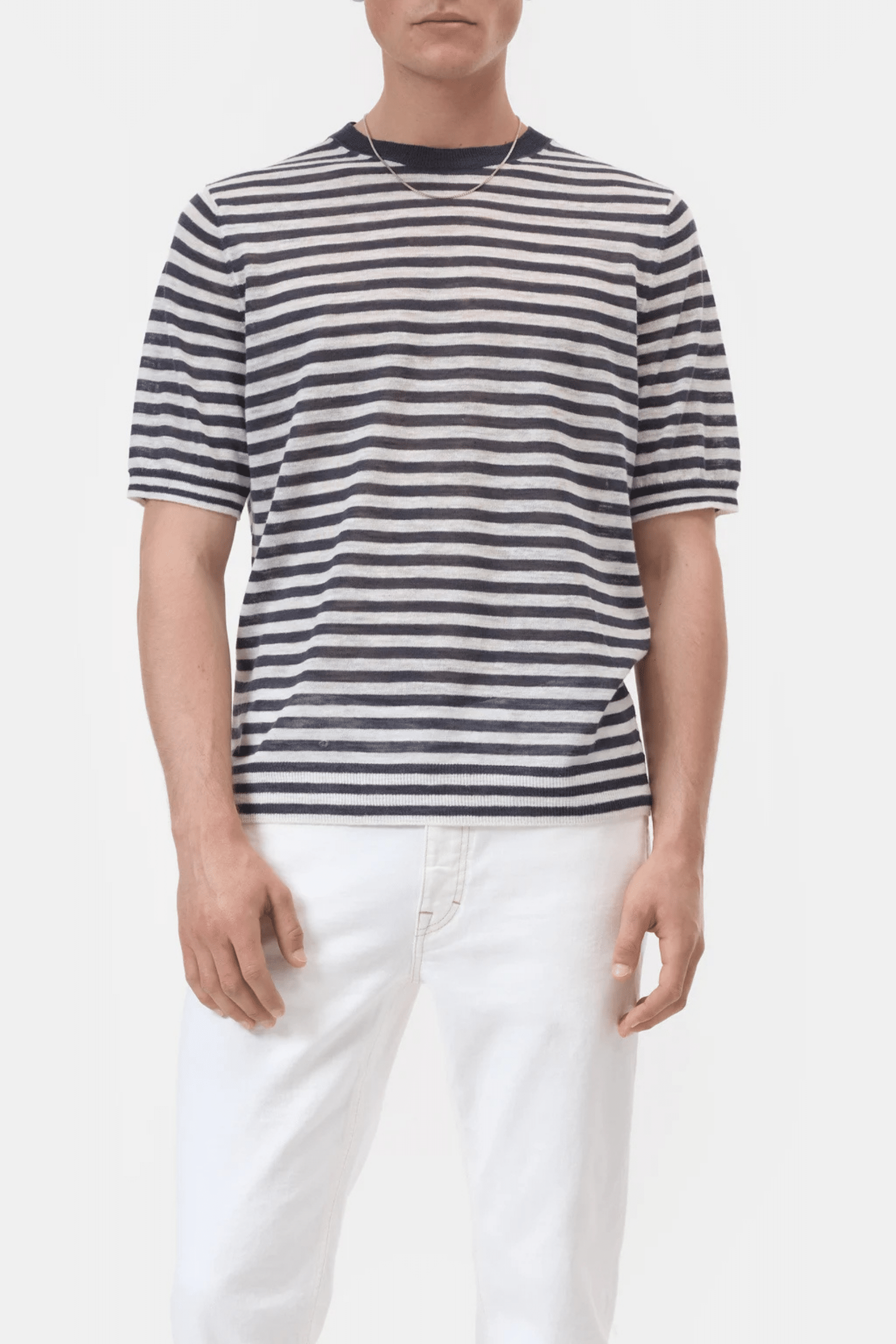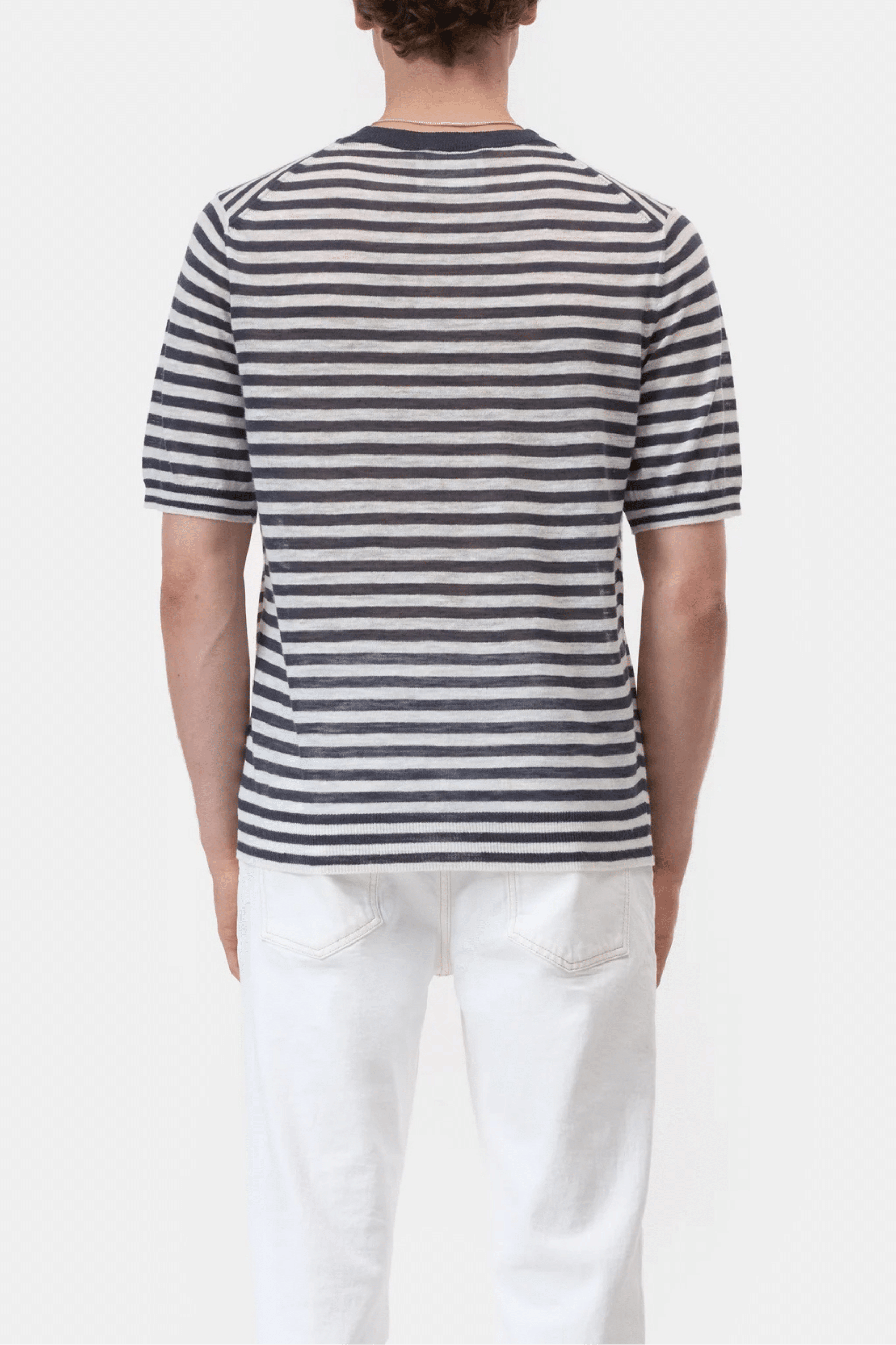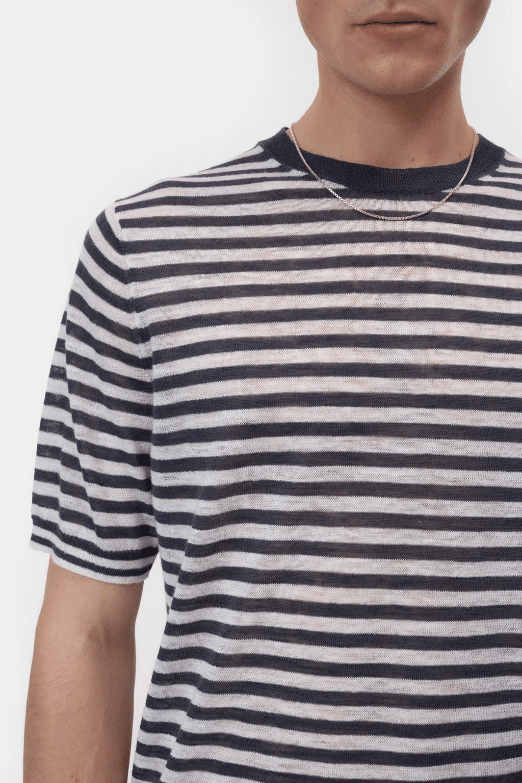 Tee-Shirt Rayé Lin Mélangé Noir Magma
