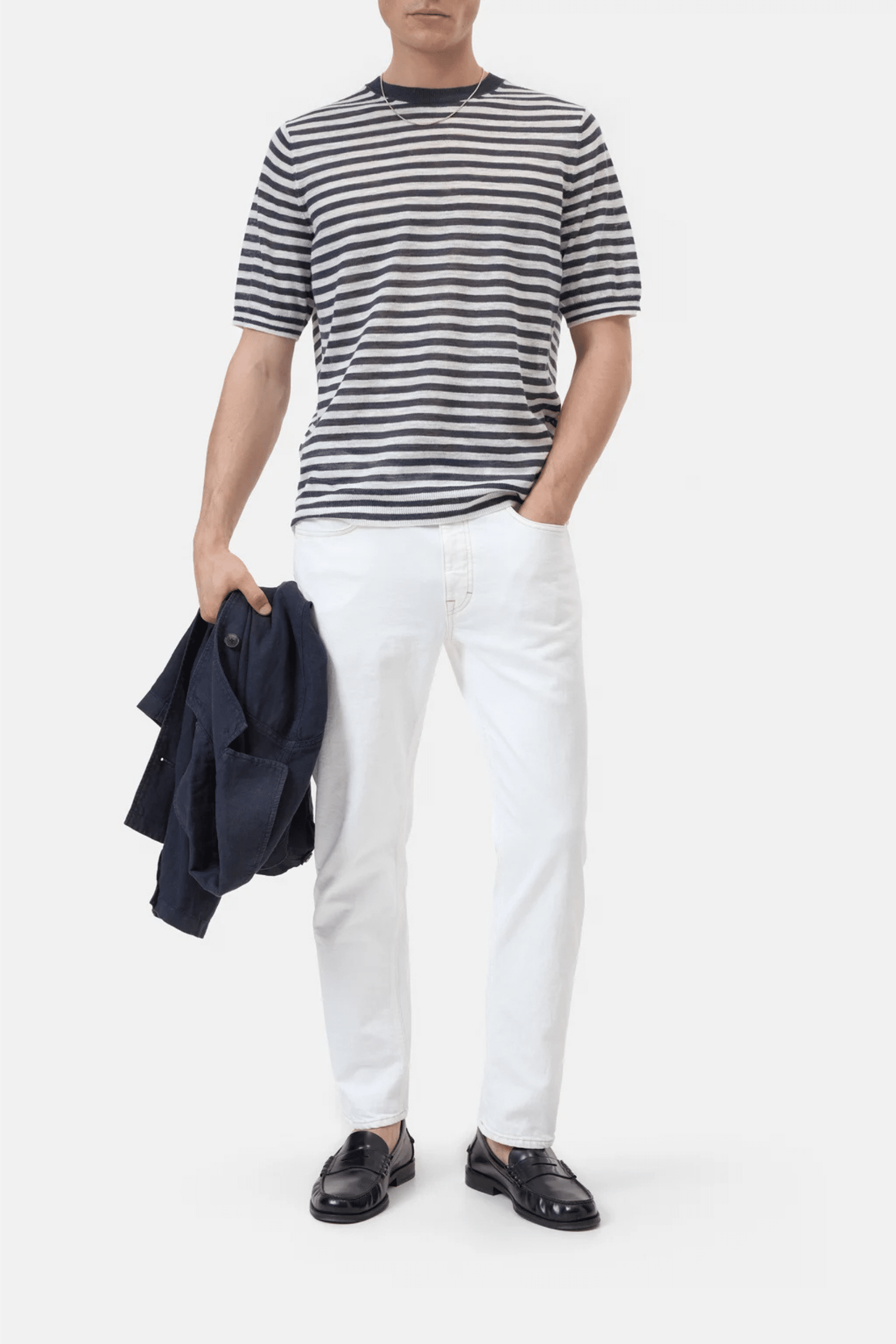 - finitions côtelées au niveau du col, des manches et de l’ourlet droit